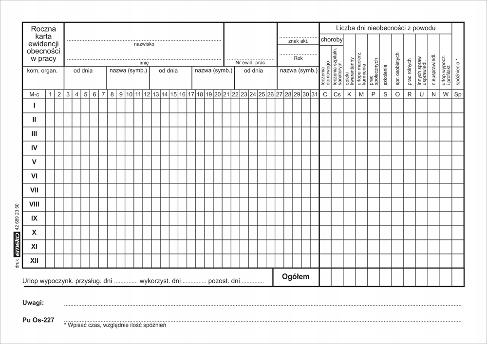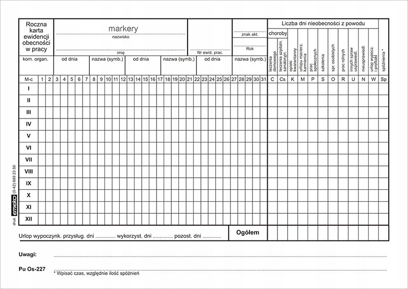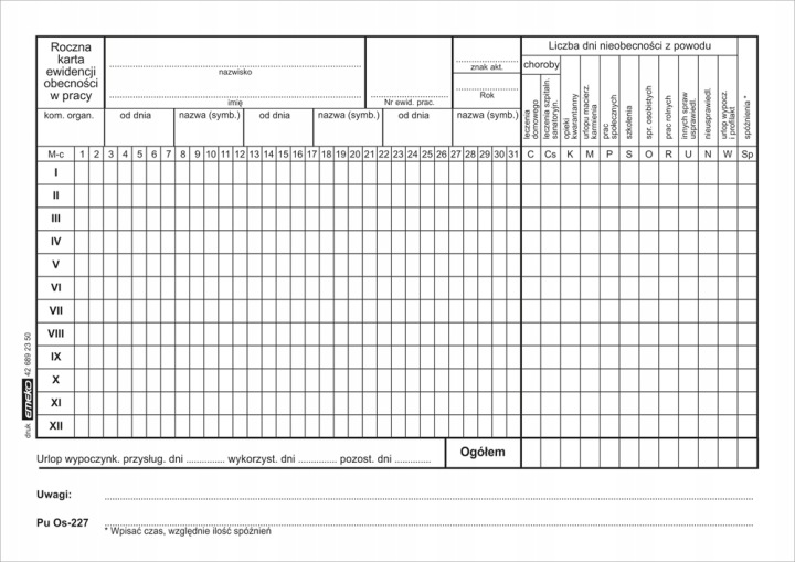 друк річна карта обліку відвідуваності A5 Os-227