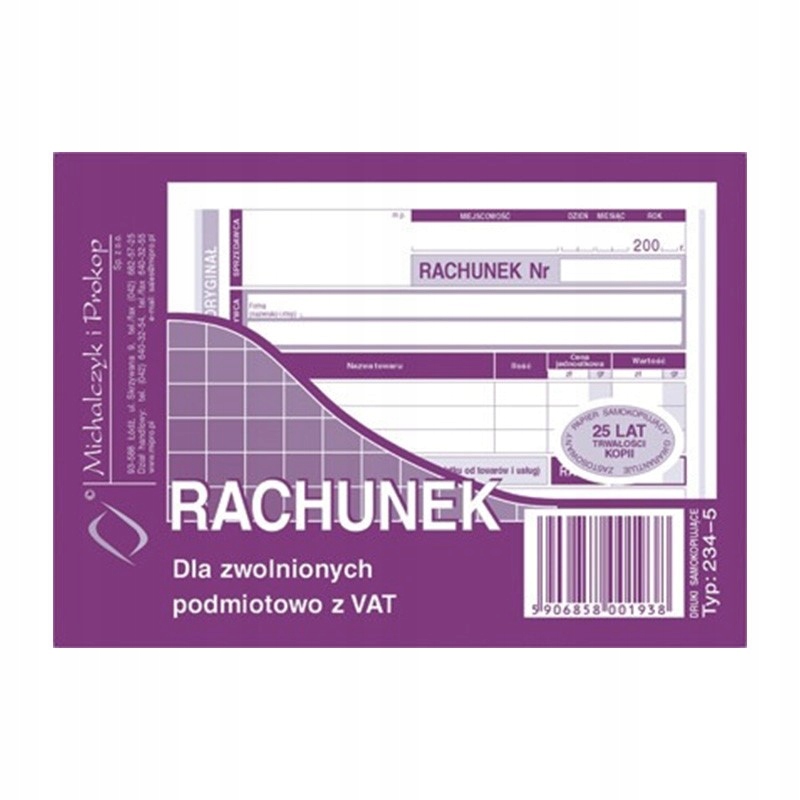 Друкований рахунок для звільнених від ПДВ A6 рівні 80 аркушів друк