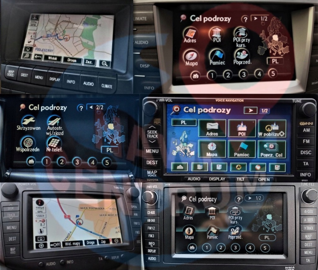 - Toyota з Європи: TNS510, TNS600, TNS700, X-NAV, Touch Pro 2 (Cruiser 200 2016-2020), Touch & Go і Touch & Go Plus і Touch 2 with Go і Touch 2 with Go Plus,
