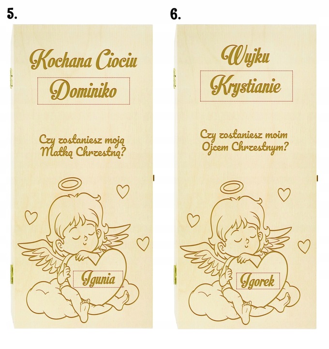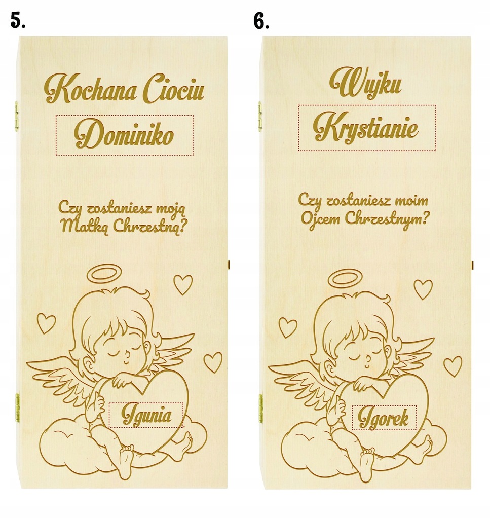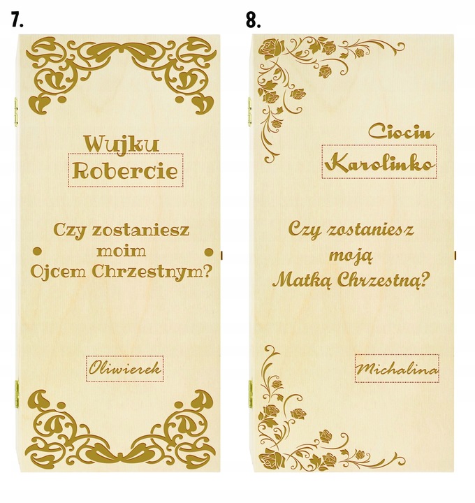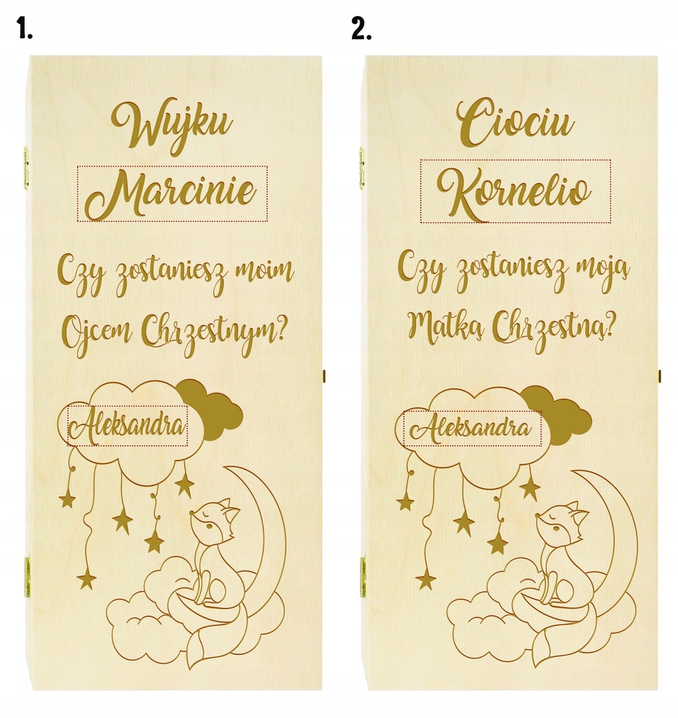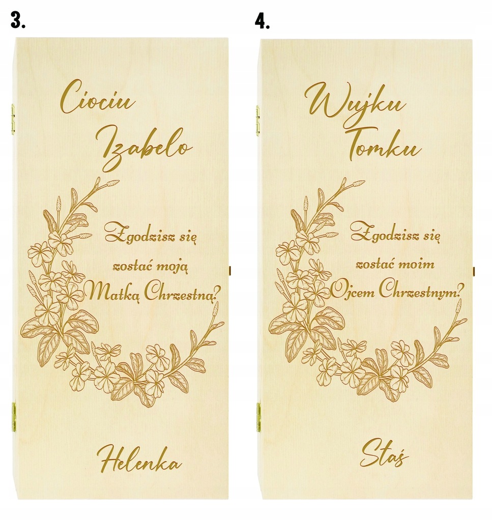 винний ящик-це незвичайна ідея в ситуації, коли ми хочемо задати дуже важливе питання. Нанесений на ящик гравер-це не просто запит. Такий подарунок підкреслює ранг події та роль, яку гратимуть хрещені батьки для нашої дитини.