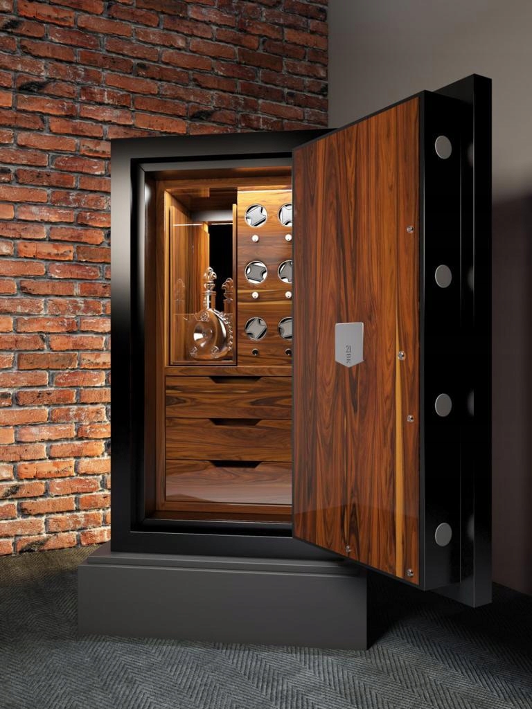 - функціональність: всередині сейфа є спеціальний ящик для пляшки ексклюзивного коньяку і місце для цінних речей і документів.