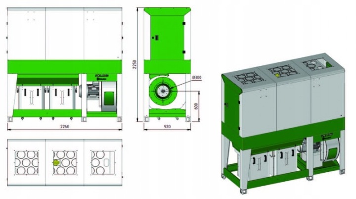 • вентилятори розміщені в спеціальних звукопоглинальних кабінах. Вони мають спеціальну конструкцію лопатей, що робить їх більш ефективними та ефективними, а також сприяє економії електроенергії.