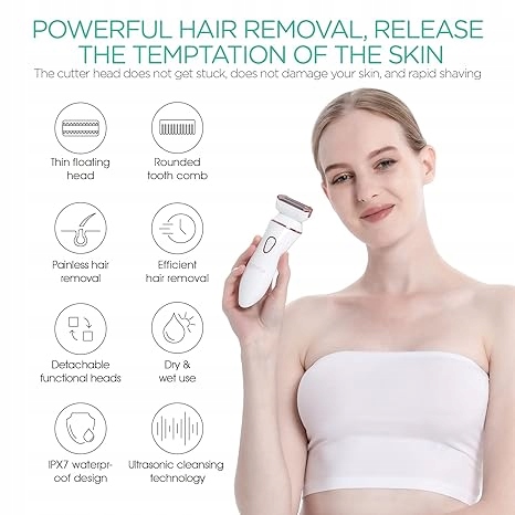 - універсальна бритва 4-в-1-включає в себе 3 змінні головки з лезами, які задовольнять Ваші різноманітні потреби в голінні всього тіла, ніг, зони бікіні і пахв. Він включає щітку для чищення обличчя, яка дозволяє глибоко очистити шкіру.