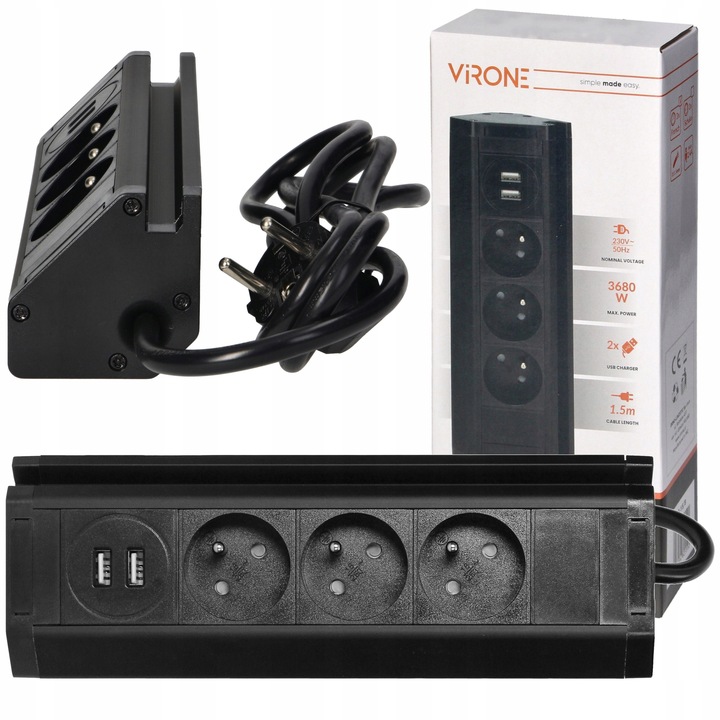 потрійна меблева розетка з тримачем для телефону, USB-зарядним пристроєм і шнуром 1,5 м-зручність і функціональність в одному!