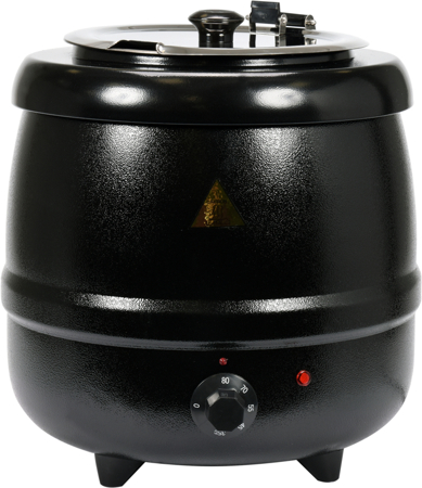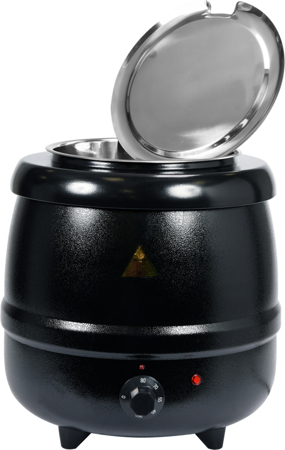 рекомендується для подачі супів, кремів і соусів. Виготовлений зі сталі, пофарбований в чорний колір корпус забезпечує естетичний вигляд. Завдяки цьому котел ідеально підходить для буфетів і готельних ресторанів.