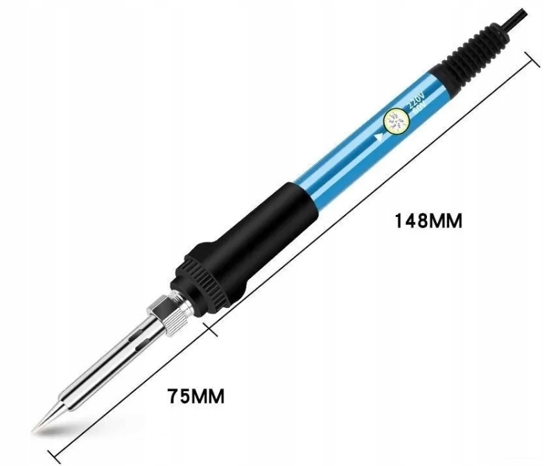 паяльник з комплекту був міцно виготовлений з високоякісних матеріалів. Його конструкція зручна і добре збалансована, що при максимальній потужності 60 Вт і можливому регулюванні температури забезпечує ефективну і комфортну роботу.