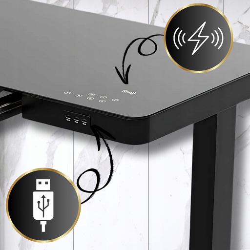 ✔ індукційна зарядна станція : наш регульований по висоті стіл з індуктивної зарядної поверхнею забезпечує миттєве бездротове живлення смартфонів. Просто помістіть свій Qi-сумісний смартфон в зону зарядки електричного столу і відразу ж почніть зарядку-без кабелю! Крім того, ви також можете заряджати смартфон через один з трьох вбудованих USB-портів. Це означає, що наш регульований по висоті стіл електрично дуже універсальний.