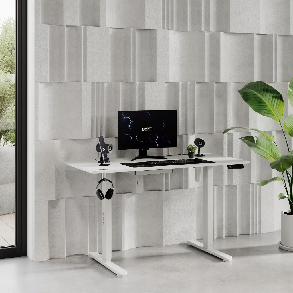 електричний стіл Sense7 NOJO - це поєднання сучасності з надзвичайною зручністю. Можливість регулювання висоти-це перевага, яка може багато чого змінити! На додаток до звичайного невеликого регулювання, яке буде відповідати вашому стільцю, ви також можете підняти предмет меблів до такої висоти, щоб ви могли комфортно працювати стоячи.