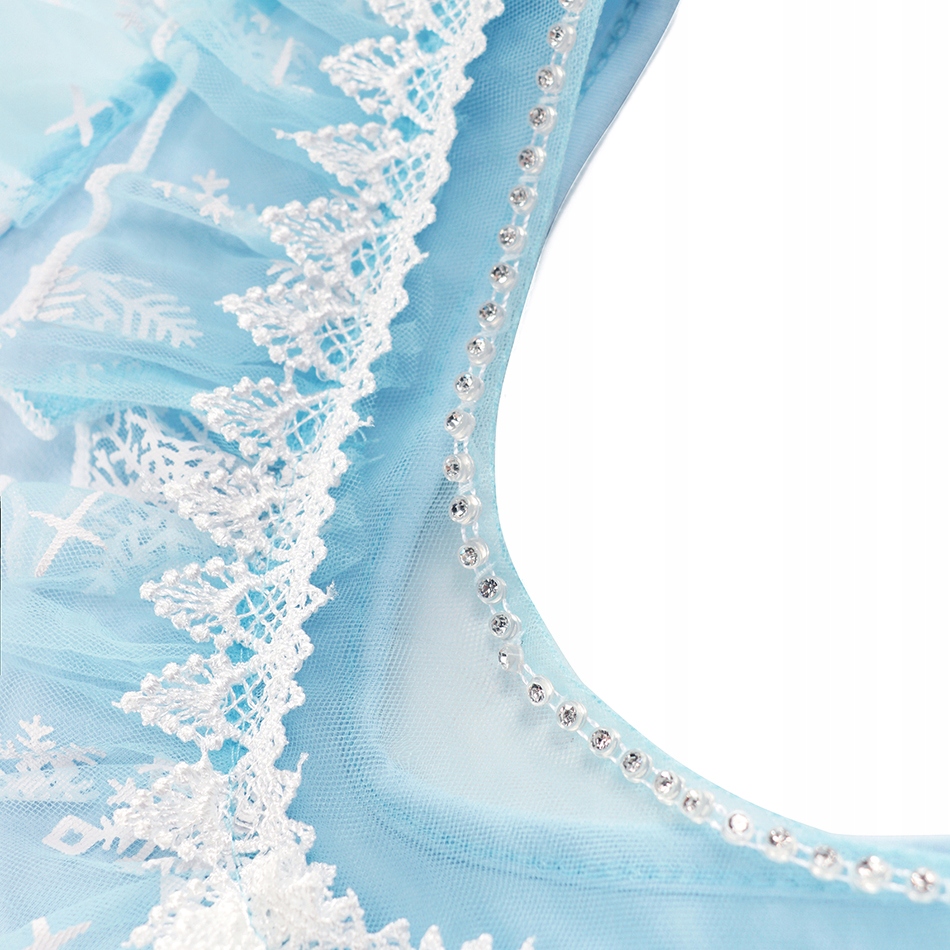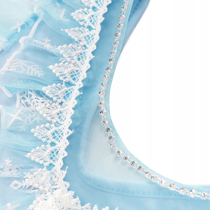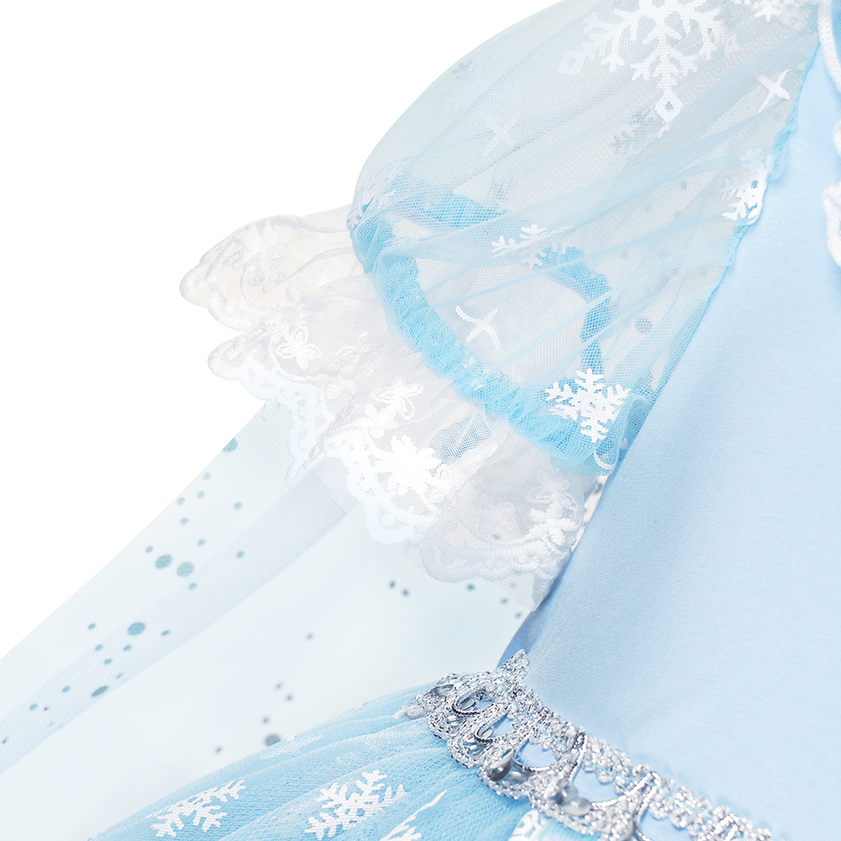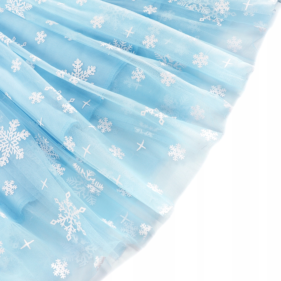 - на тюлі сукні євізерунок сніжинок, який вінчає весь силуетмаленької крижаної королеви,