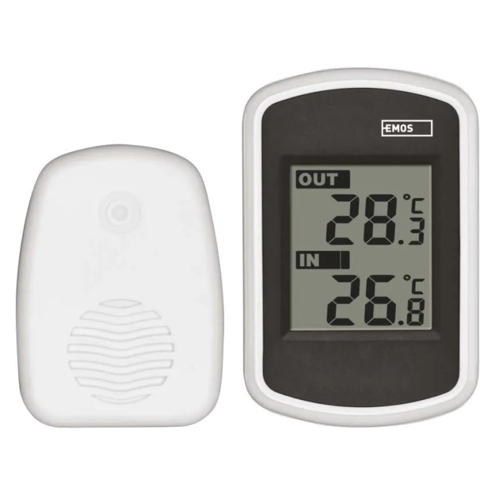 бездротовий термометр EMOS E0042 - точне вимірювання температури в межах вашої досяжності! Бездротовий термометр E0042 від EMOS-це компактний і простий у використанні прилад для вимірювання температури в приміщенні і на вулиці, що забезпечує точність і зручність використання. З його допомогою ви легко контролюєте умови навколишнього середовища без необхідності використання кабелів, тому він ідеально впишеться в будь-який інтерʼєр.