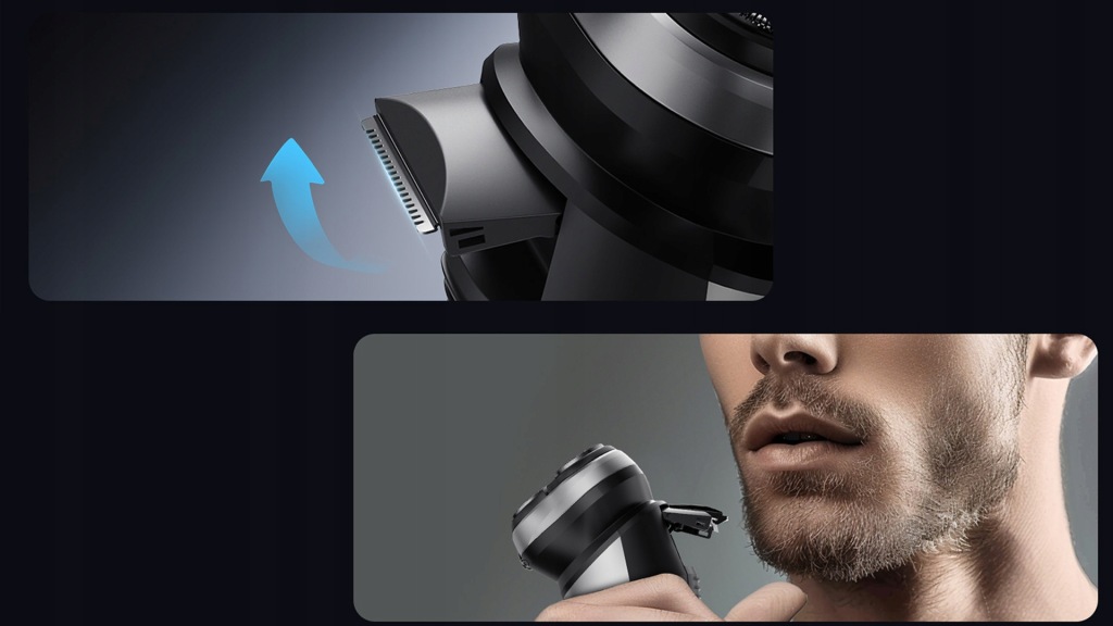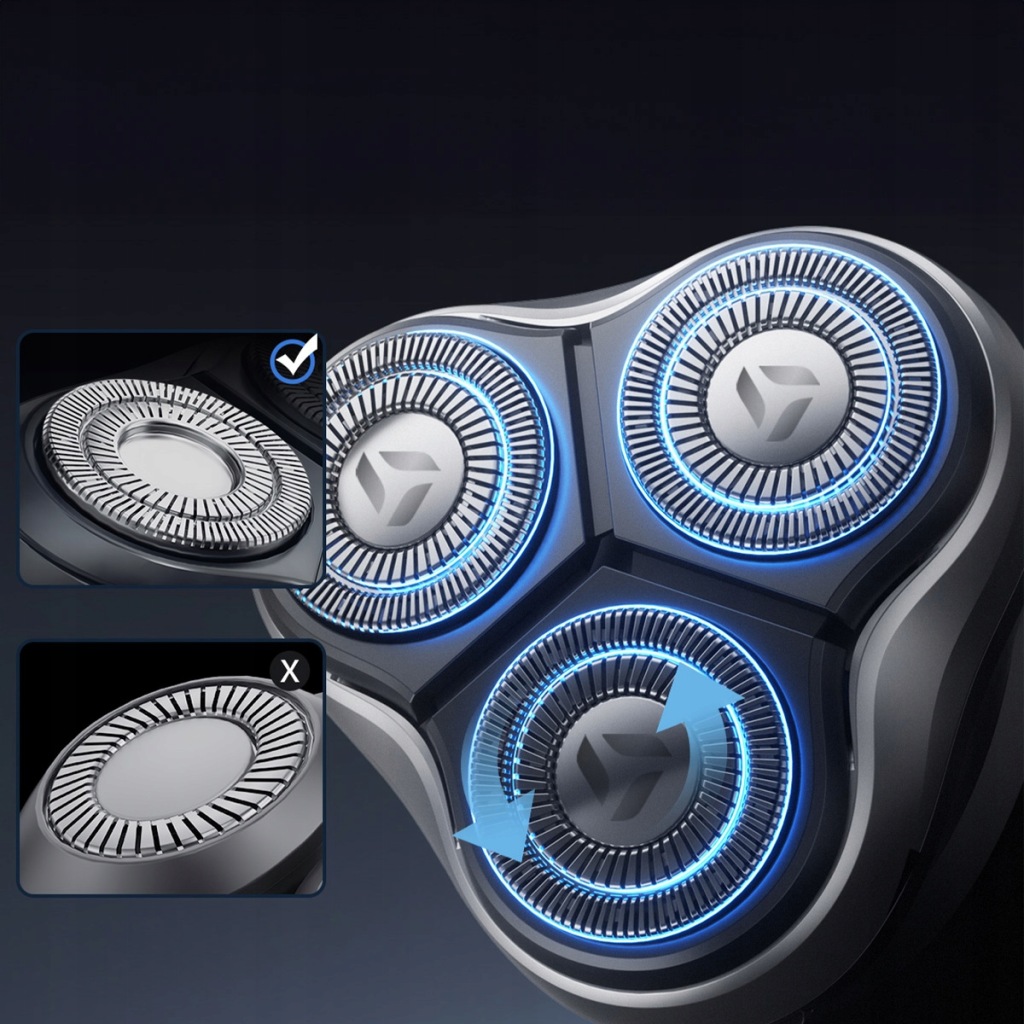 незалежно плаваючі ріжучі головки, повністю гнучкі головки обертаються на 360 градусів, ідеально підходять для вигинів і овалу обличчя і шиї, гарантуючи не тільки точне гоління, але і неперевершене відчуття комфорту.