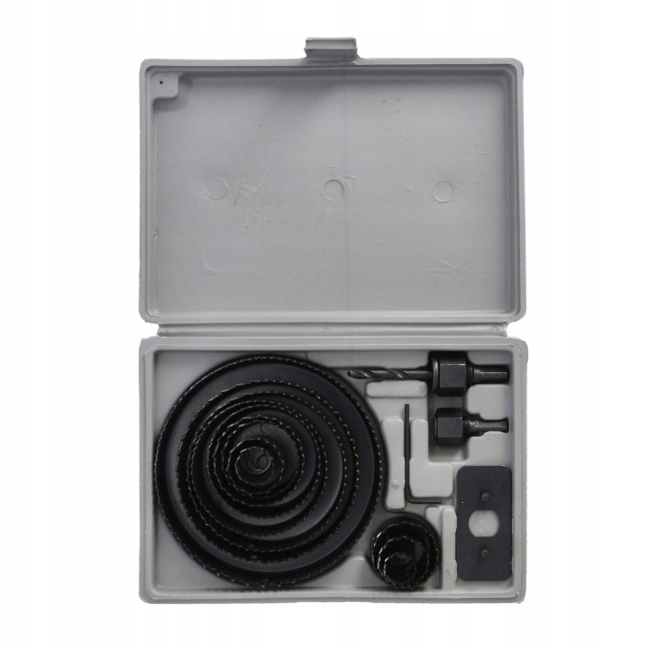 - в комплекті 12 мережив: 19; 22; 29; 32; 38; 44; 51; 64; 76; 89; 102; 127 мм.; направляюче свердло 6 мм; адаптер 2 шт.; привід; шестигранний ключ