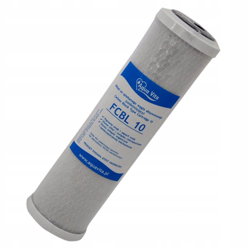 картридж FCBL 10 виготовлений з спеченого активованого вугілля, який видаляє з води від 98% до 99% вільного хлору, хлоропровідних розчинників, ароматичних вуглеводнів, а також до 85% пестицидів хлоропровідного Походження, багатоароматичних сполук, фенолу, бензолу і органічних речовин.