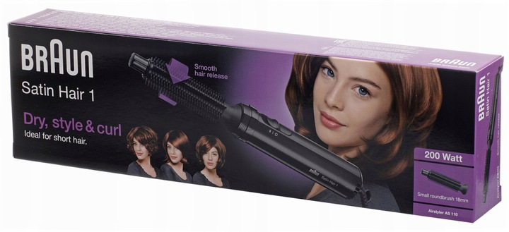 коротке волосся дають багато можливостей! Зустрічайте безліч зачісок, які можна зробити з вашого короткого волосся за допомогою сушарки для завивки Braun Satin Hair 1 Airstyler. Укладайте і сушіть волосся одночасно, захищаючи волосся за допомогою унікальної технології Braun. Зробіть справжні, солодкі локони в стилі 20-х років., надати чубку складну форму, надати волоссю обʼєм біля коріння або вивернути кінчики будь-яким зручним для вас способом.завивка-сушарка Braun Satin Hair 1 AS 110 потужністю 200 Вт з 2-ступінчастою регулюванням температури і сили вітру має круглу щітку 18 мм, тримач для підвішування і з захистом від перегріву. Крім того, він оснащений функцією розгортання.