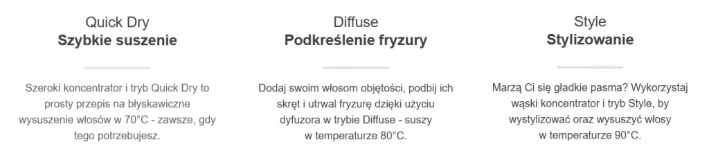 персоналізувати ефекти укладання дозволяють входять в комплект накладки і 3 різних режиму сушіння-кожен працює при різній температурі. Таким чином, ви завжди досягаєте бажаного результату.
