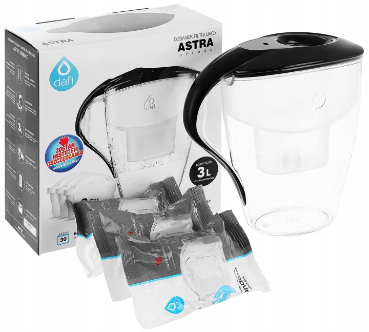 глечик Dafi Astra Unimax 3L чорного кольору з трьома фільтрами.