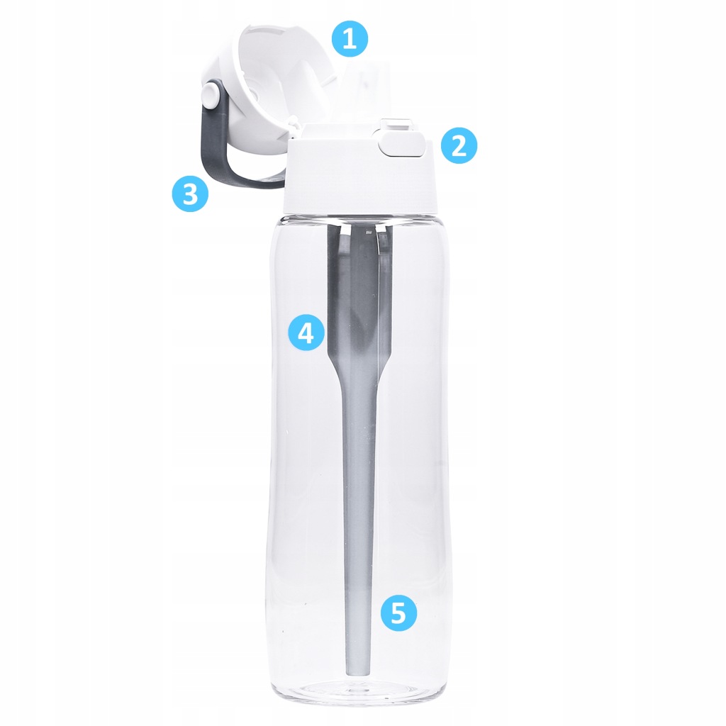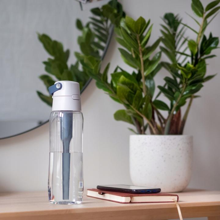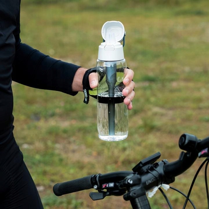 нова версія пляшки має спеціальну соломинку для фільтра, яка дозволяє легко пити воду до останньої краплі .