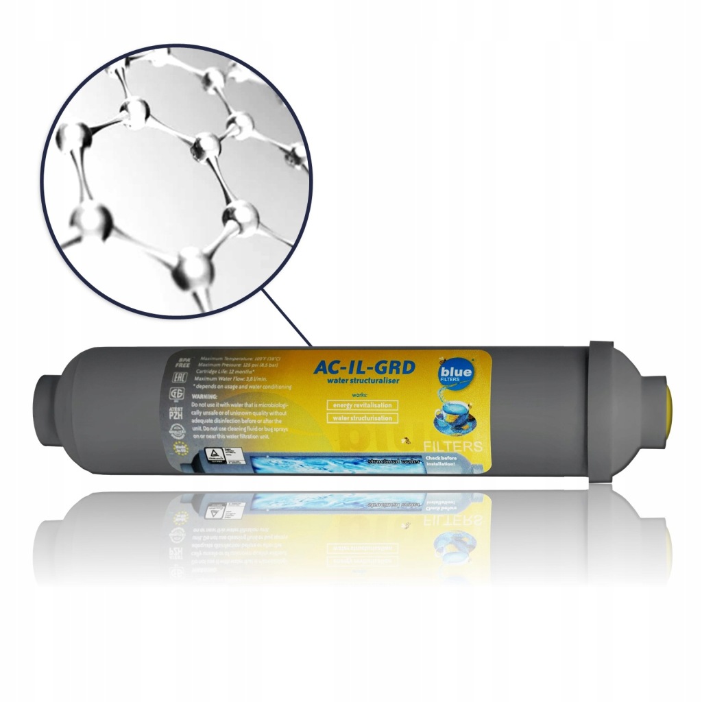 10. AC-IL-GRD-структурний внесок для пожвавлення води.Він забезпечує стабільну внутрішню структуру води і позитивно змінює її мікробіологічні та фізичні властивості. Коли вода проходить через картридж, вся негативна інформація видаляється і замінюється позитивною. Таким чином, без будь-якого фізичного контакту або хімічної модифікації отримується вода з записаною інформацією так само, як і в структурній воді (гексагональна структура).