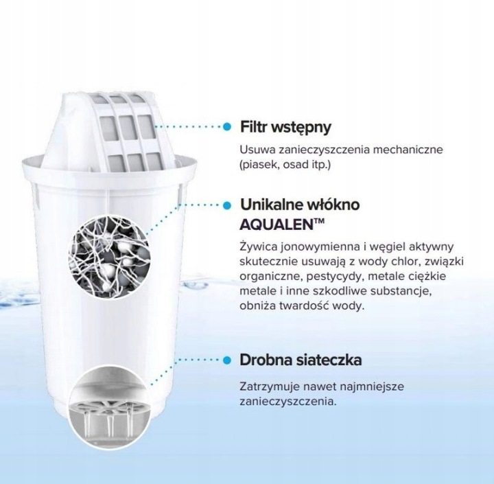 картридж Aquaphor A5 містить волокно Aqualen , завдяки якому ефективно видаляє іони важких металів, а іонообмінна смола, що міститься у фільтруючій суміші, помʼякшує воду, тим самим ефективно видаляє накип з води.