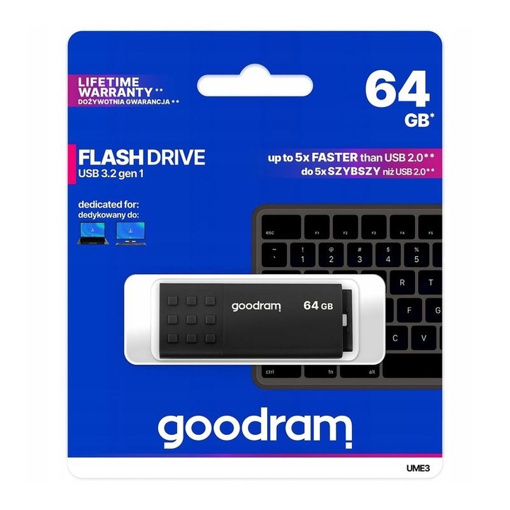 64GB GOODRAM USB 3.2 Gen. 1 Pendrive-це практичний портативний пристрій, який забезпечує швидку і легку передачу даних. Завдяки великій ємності 64GB на ньому можна зберігати велику кількість файлів, фотографій або відео. USB 3.2 Gen. 1 забезпечує швидку передачу даних, що особливо важливо для великих файлів. Флешка GOODRAM-це надійний і надійний продукт, який підійде для повсякденного використання.