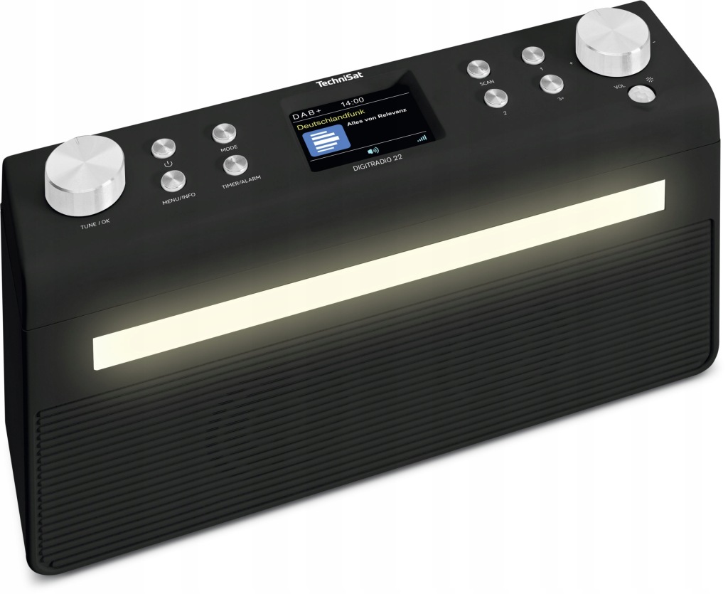 цифрове радіоDigitRadio 22 DAB+ FMнімецької марки Technisat дозволяє приймати цифрові радіостанції мовлення в стандарті DAB+ І DAB, а також аналоговірадіостанції Fm . Завдяки функції Bluetooth вбудоване радіо можна підключити до смартфону і відтворювати улюблену музику прямо з телефону. меню пристрою m.in. польською мовою.