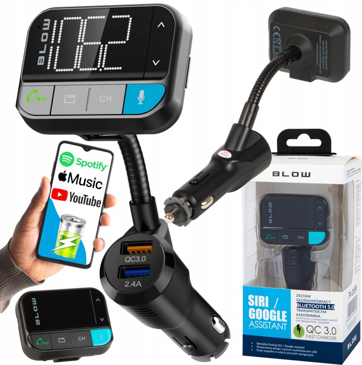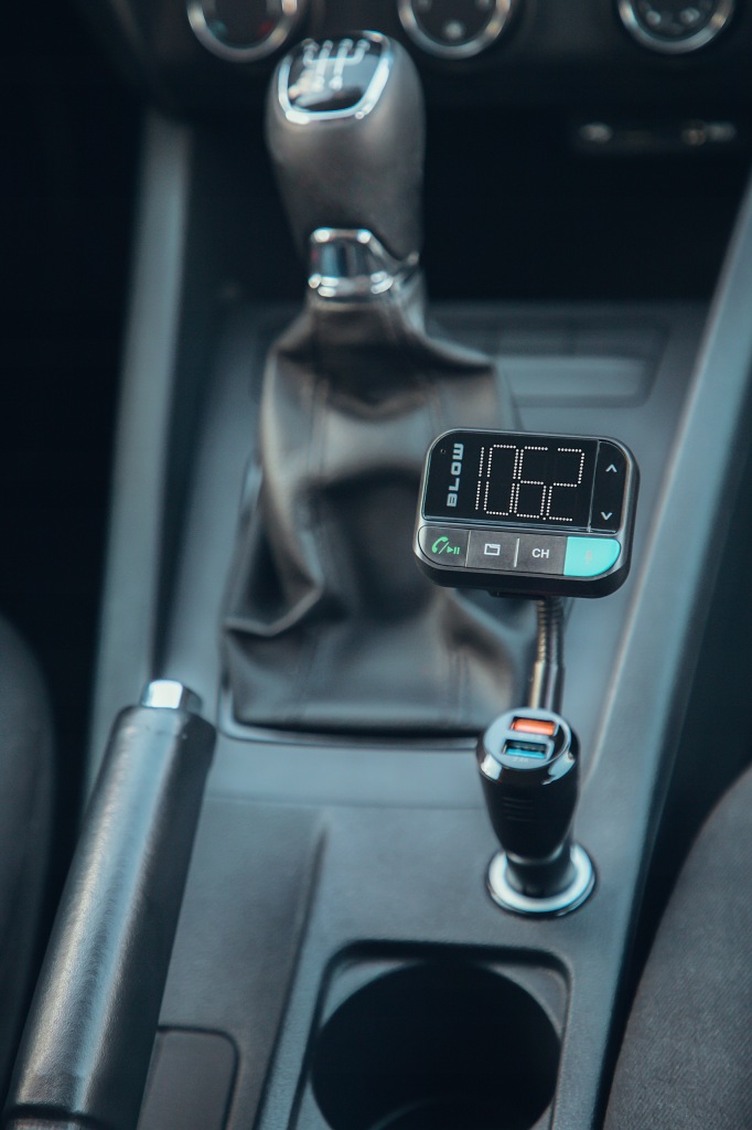 високоякісний багатофункціональний комплект гучного звʼязку з функцією FM-передавача і USB-зарядним пристроєм. Продукт збільшує функціональність навіть найпростішого радіо в автомобілі, тим самим покращуючи комфорт подорожі. За допомогою цього пристрою ви також можете відтворювати музику через свій телефон, карти памʼяті microSD або будь-який інший пристрій з функцією Bluetooth. Передавач живиться від прикурювача.