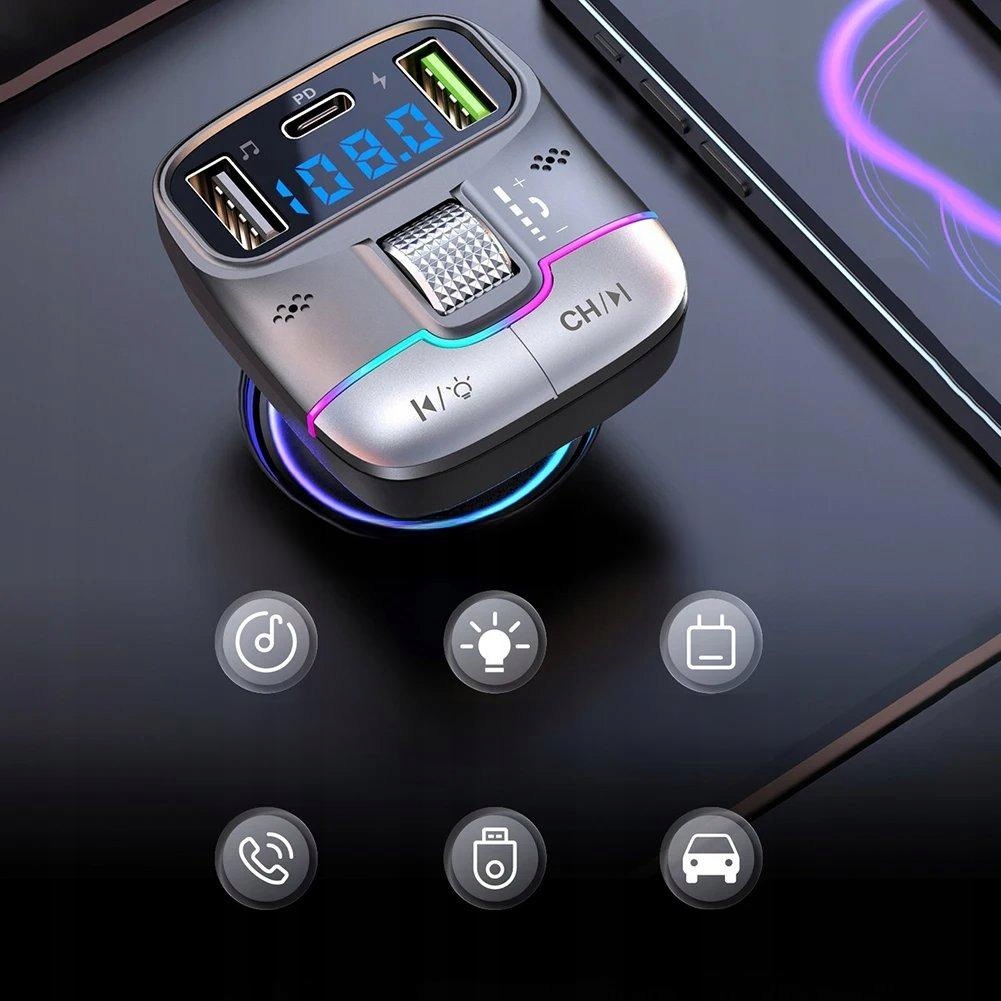 FM-ПЕРЕДАВАЧ BLUETOOTH ШВИДКИЙ ЗАРЯДНИЙ ПРИСТРІЙ QC USB PD 15 ВТ МУЗИЧНИЙ ПЛЕЄР