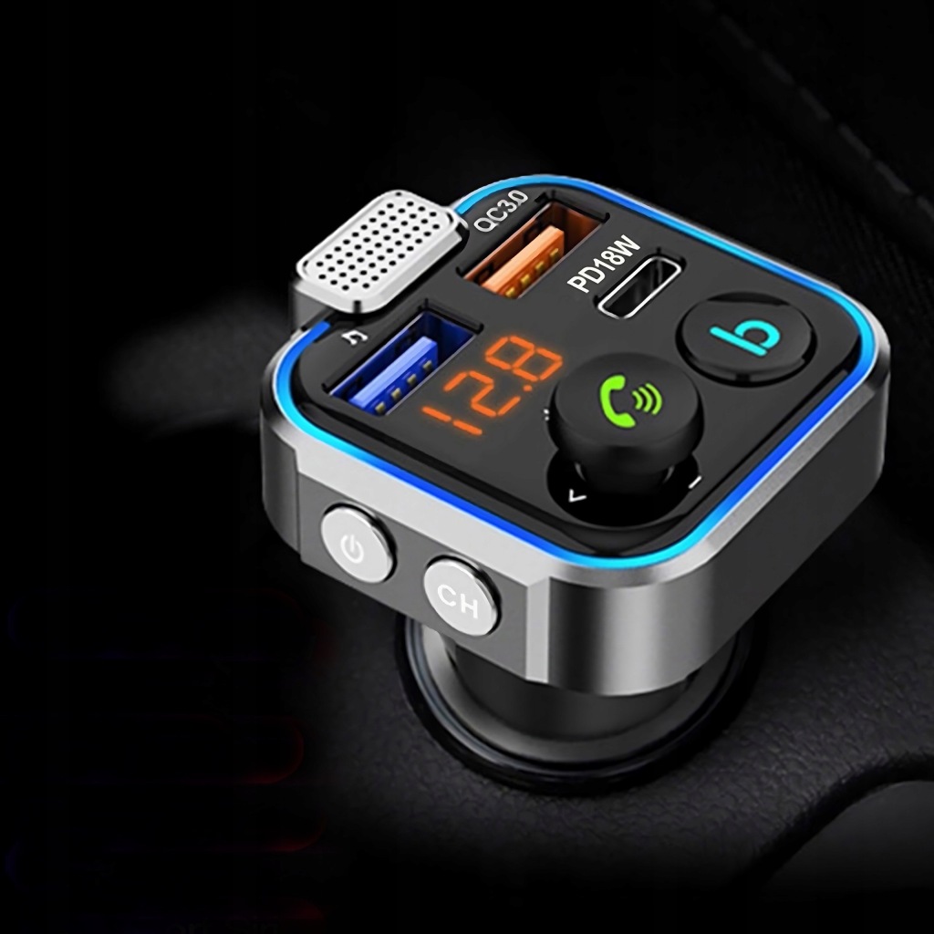 практичний і ретельно зроблений transmiter , це пристрій, який значно поліпшить комфорт Вашого життя. Ідеальний пристрій для людей, що знаходяться в постійному русі. Ідеально підходить для водіння автомобіля. Відмінно підходить для зарядки телефону або підтримки голосових дзвінків. Він має вбудований мікрофон іцифровий дисплей . Його основною перевагою є читання карт памʼяті TF/ micro SD. Функція FM Bluetooth дозволяє вільно спілкуватися. два порти USB дозволяють заряджати два пристрої одночасно.
