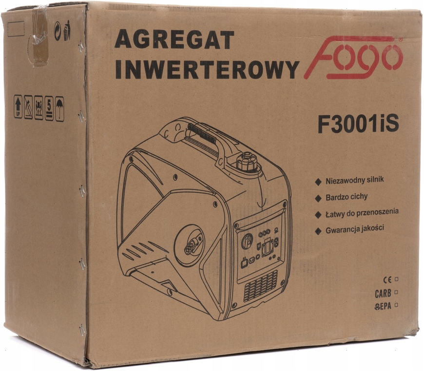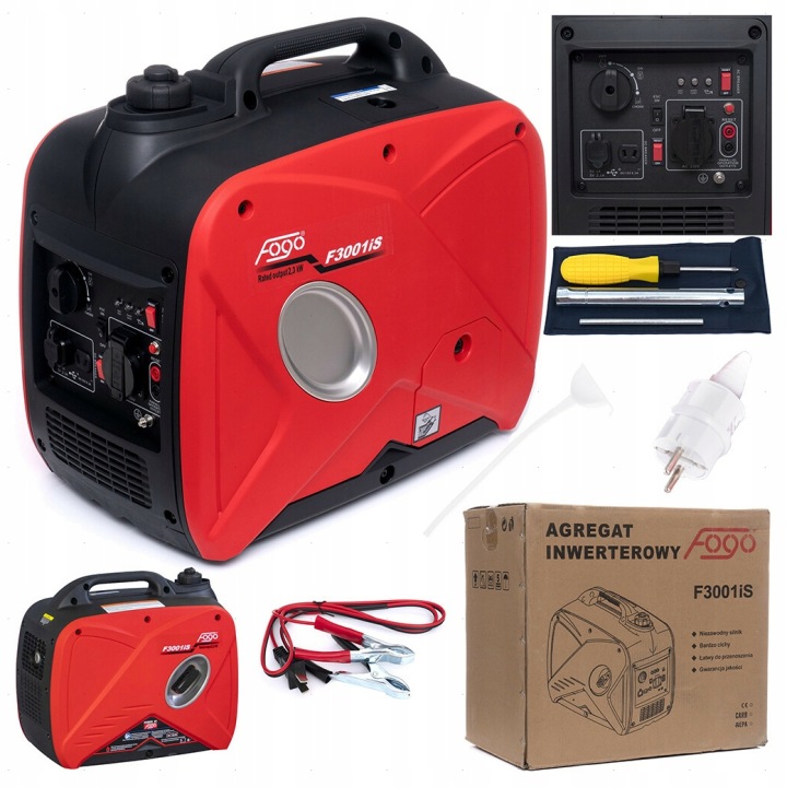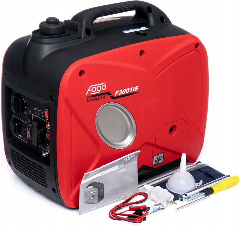 генераторна установка Fogo f 3001 IS це переносна генераторна установка з бензиновим двигуном Rato R 120-Vi, номінальною потужністю 2,3 кВт (Максимальна потужність: 2,5 кВт) на однофазний струм. Пристрій відноситься до серії агрегатів з інверторним регулюванням напруги, тому з успіхом може використовуватися для живлення найвимогливіших електронних пристроїв. Крім того, інверторні агрегати завдяки компактній конструкції і легкій вазі дуже мобільні-машина має зручну транспортну ручку. F 3001 is оснащений синхронним генератором зі ступенем захисту IP23, тому він захищений від випадкового дотику пальця і розпилення води під будь-яким кутом до 60 ° від вертикалі з кожного боку. Машина має функцію економії палива за рахунок автоматичного зниження оборотів в залежності від падіння навантаження. Пристрій має можливість обʼєднання двох генераторів для створення одного генераторного агрегату з подвійною потужністю. Крім того, агрегат має функцію зарядки акумулятора.