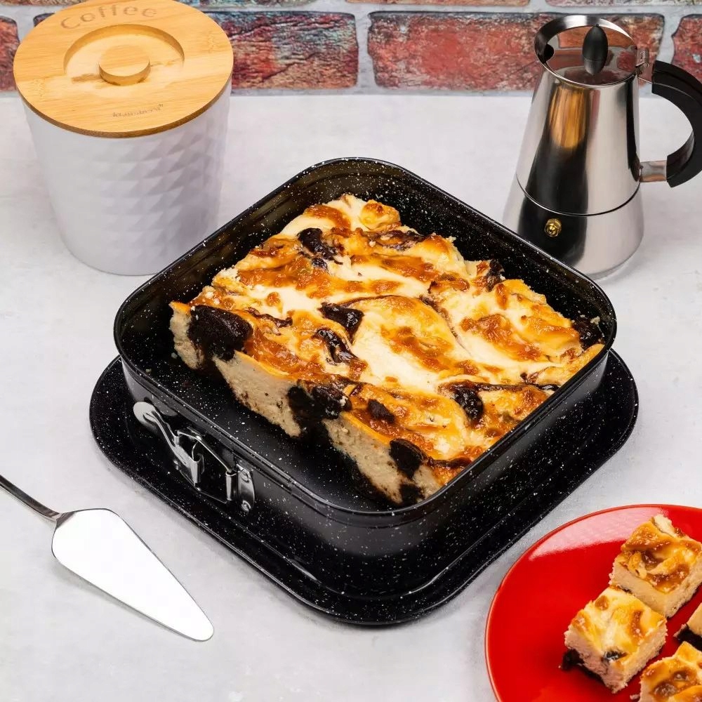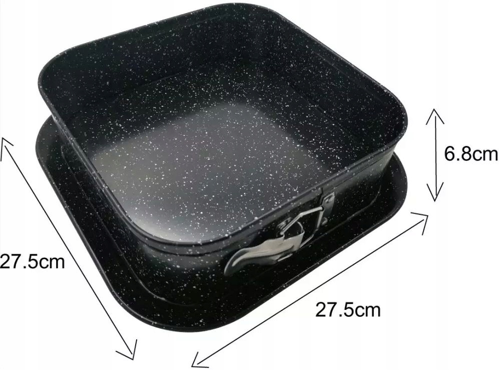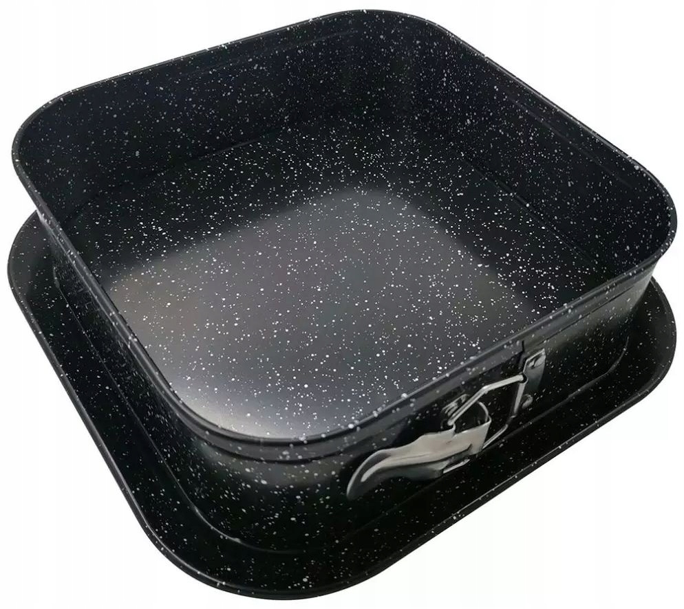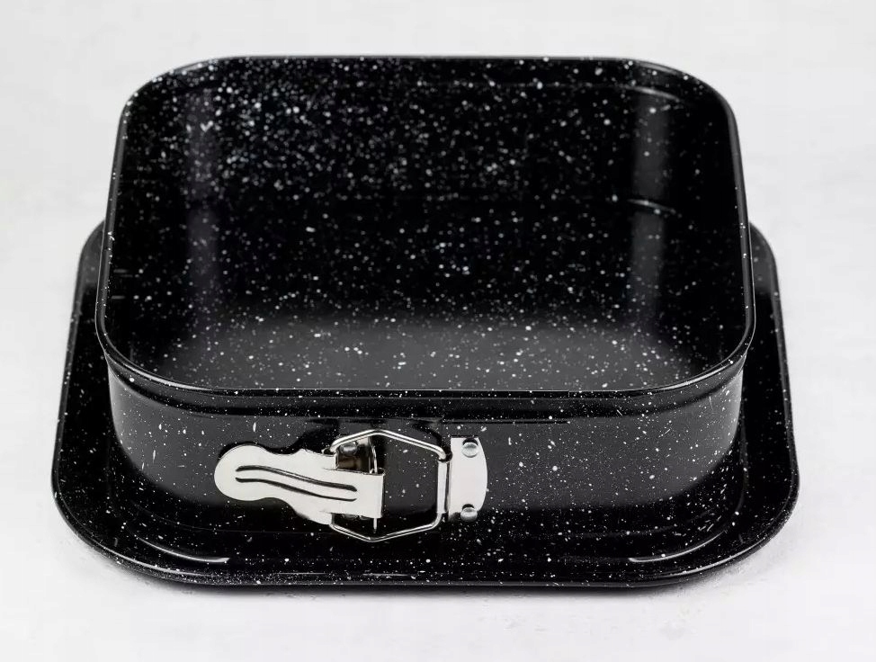 довгаста форма зі знімним кільцем для випічки торта від KINGHOFF. Завдяки можливості розстебнути кільце, у нас є можливість легко вийняти нашу випічку з форми. Деко покритий мармуровим покриттям, що запобігає прилипання випічки.