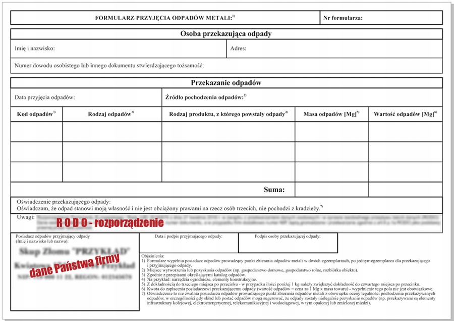 Форма прийому МЕТАЛЕВИХ ВІДХОДІВ новий шаблон GDPR
