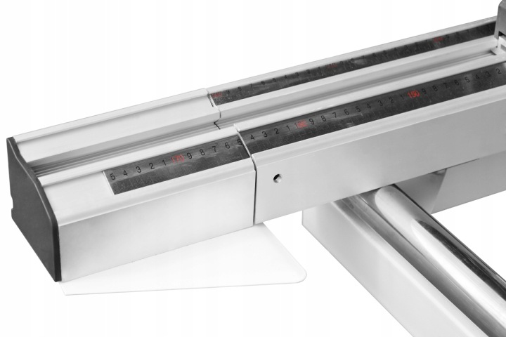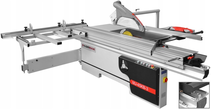 потужна професійна форматна пила з розсувним напрямним столом на стрижнях і підрізом на окремому двигуні
