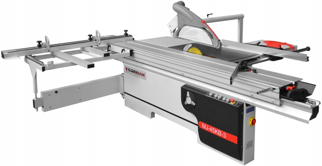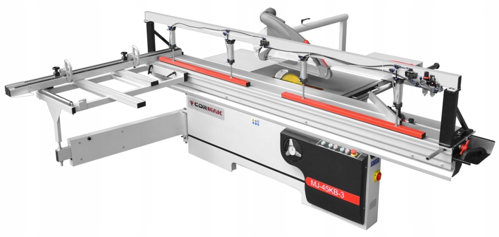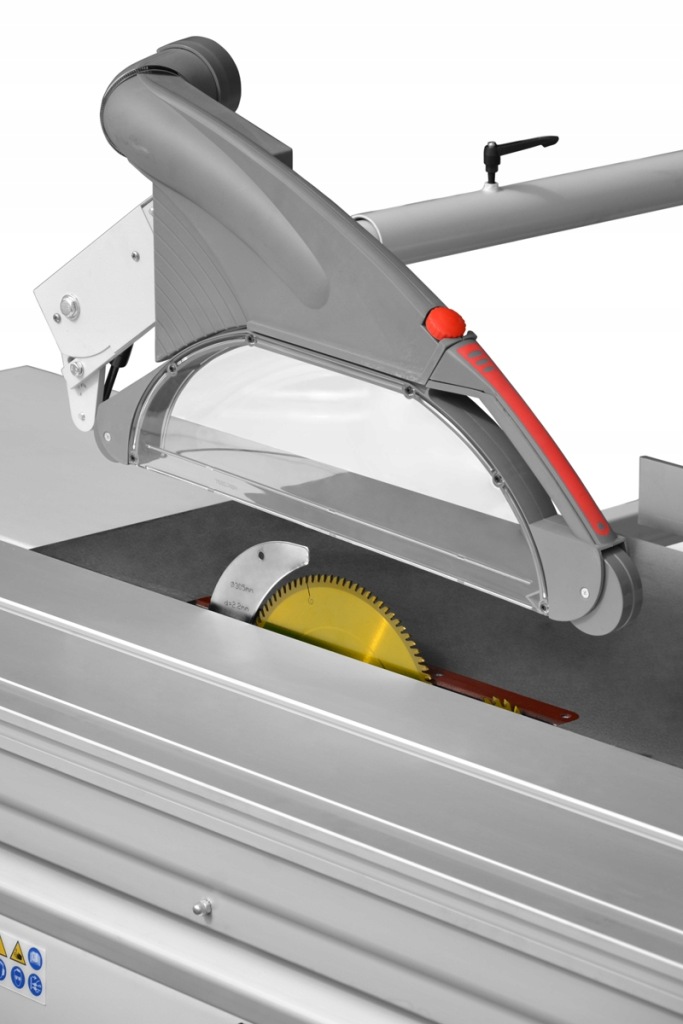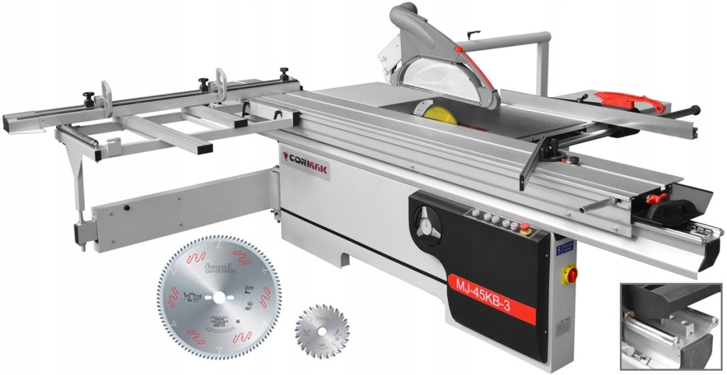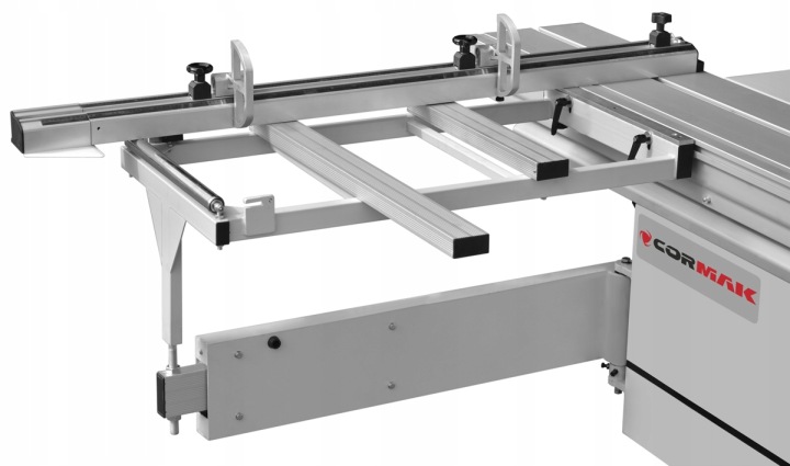 потужна професійна форматна пила з розсувним напрямним столом на стрижнях і підрізом на окремому двигуні