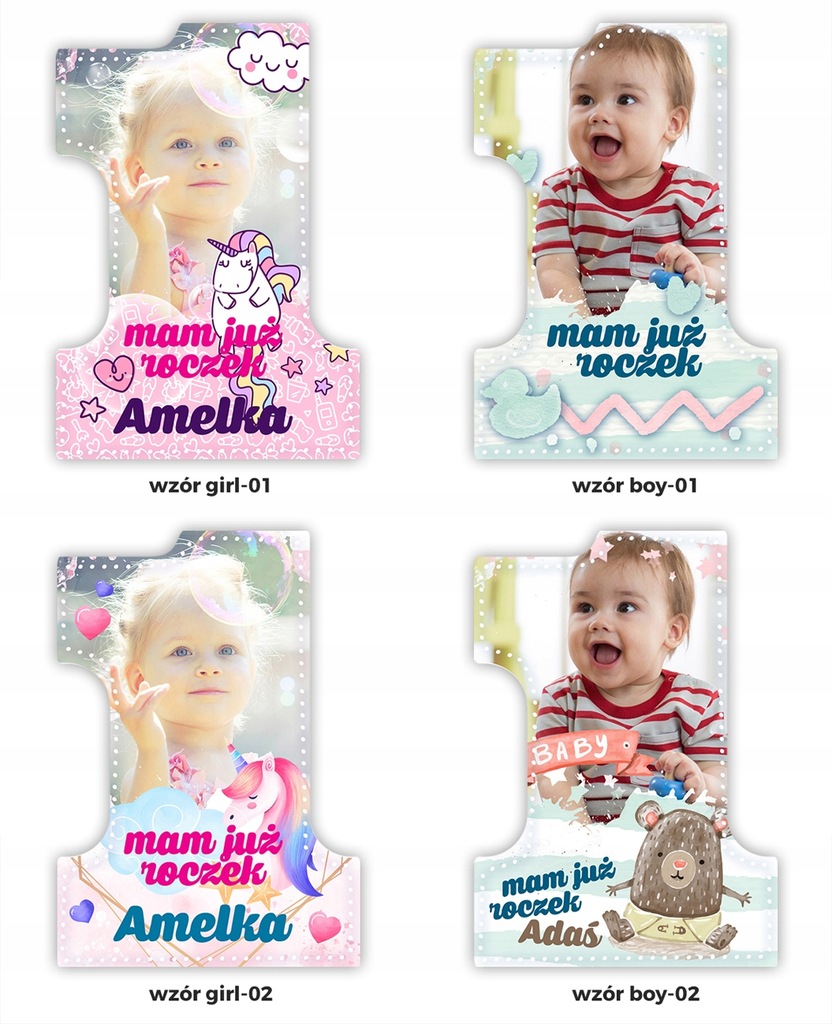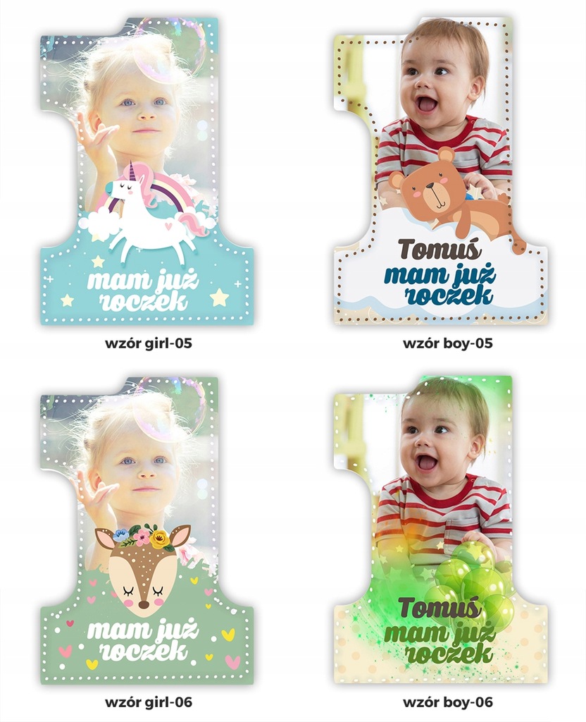 фото магніт на холодильник , подячне запрошення на перший день народження , сувеніру формі "одиниці" з вашим будь-яким відбитком , фотографією і текстом