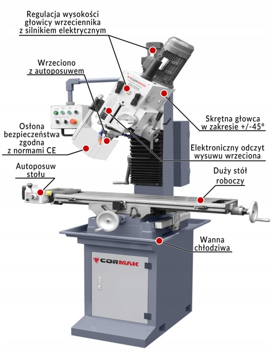 фрезерно-свердлильний верстат середнього розміру з вертикальною головкою з автопідзаводом, автоматично переміщуваний двигуном. Крім того, фрезерний верстат має функції нарізування різьблення і Цифрове зчитування в стандартній комплектації.