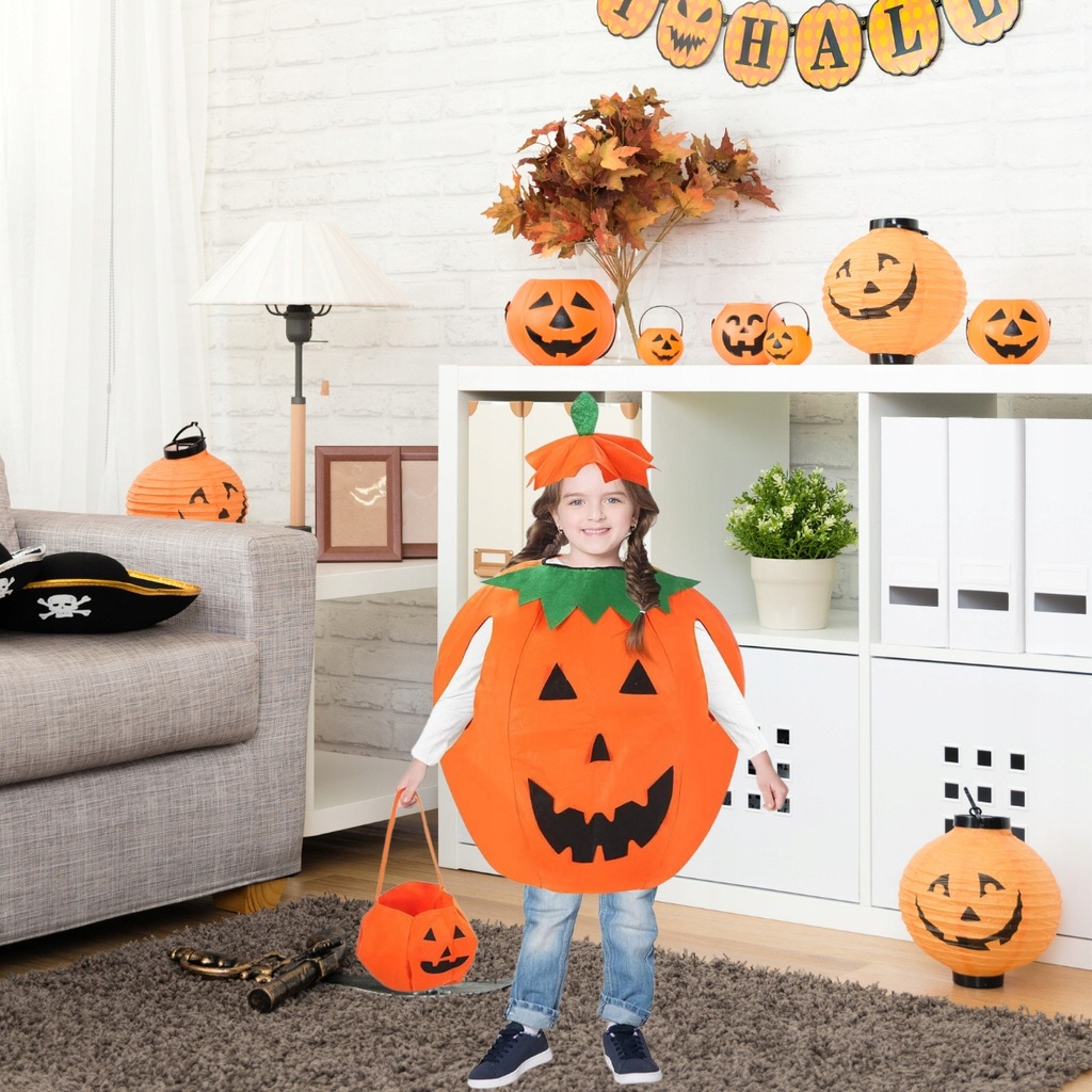 костюм чудово передає атмосферу Хеллоуїна. Яскраві кольори оранжевого, чорного і зеленого створюють ефект, який відразу ж асоціюється з осінніми і гарбузовими прикрасами. Ваша дитина буде виглядати як справжній гарбуз Хеллоуїна!