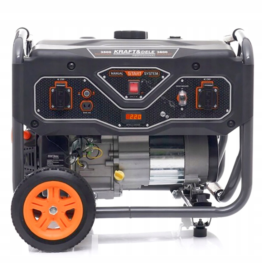 надійний агрегат марки KRAFT & amp; DELE Series Professional™ приводиться в дію міцним 4-тактним двигуном з повітряним охолодженням і хромованим поршнем, який відрізняється високою культурою роботи, призначений для скрізь, де потрібно потужний і стабільне джерело струму.