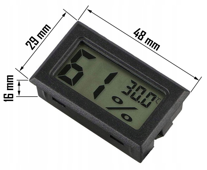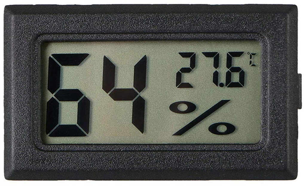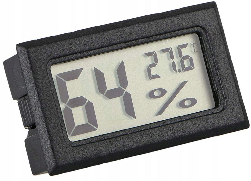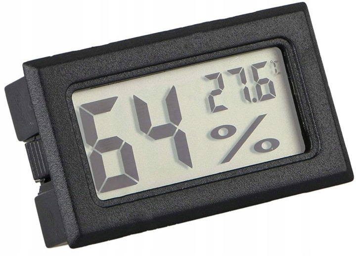електронний гігрометр з термометром з великим РК-дисплеєм і вбудованим вимірювальним зондом (датчиком). Пристрій характеризується хорошим дозволом Вимірювання і швидкістю відгуку.просто покладіть їх на відкриту долоню, і ви майже відразу побачите реакцію приладу.