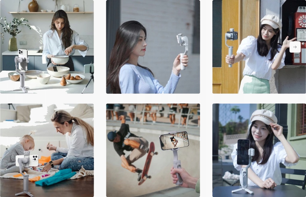 , створений для гнучкості, 3-осьовий карданний шарнір для смартфонів Hohem призначений для створення високоякісних відеороликів.він має три основних осі,що в сукупності дає можливість регулювання в 6 різних напрямках. Це робить зйомку більш зручною та зручною.
