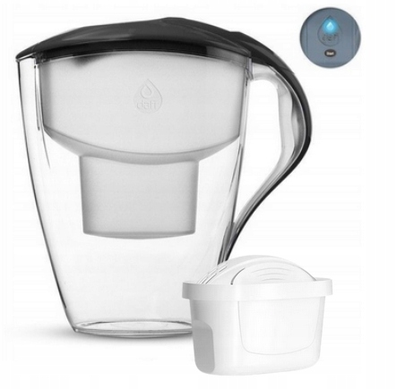 глечик Dafi Astra оснащений інноваційним індикатором витрати фільтра. Це світлодіодний індикатор, розташований на кришці посудини. Коли ви вставляєте новий картридж і натискаєте кнопку, розташовану поруч з ним, світлодіод починає світитися синім кольором. З часом і зносом фільтра його колір змінюється спочатку на попереджувальний Жовтий, що пропонує підготовку нового картриджа, а потім на червоний, що означає необхідність заміни.