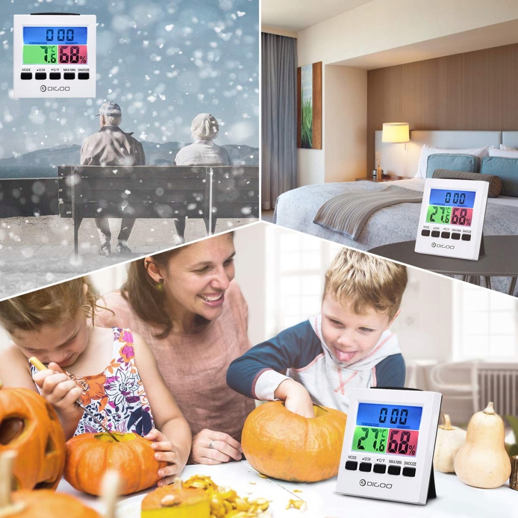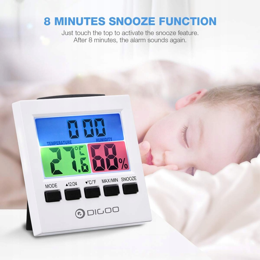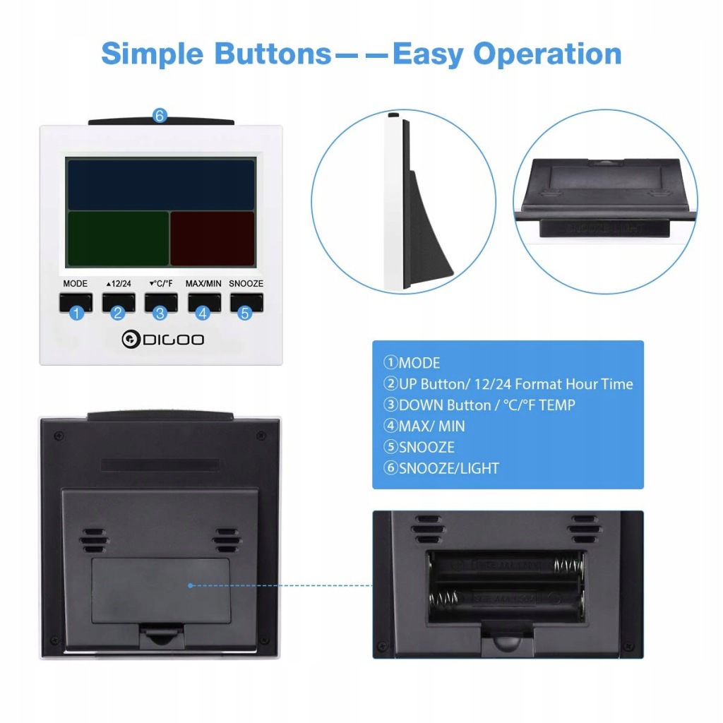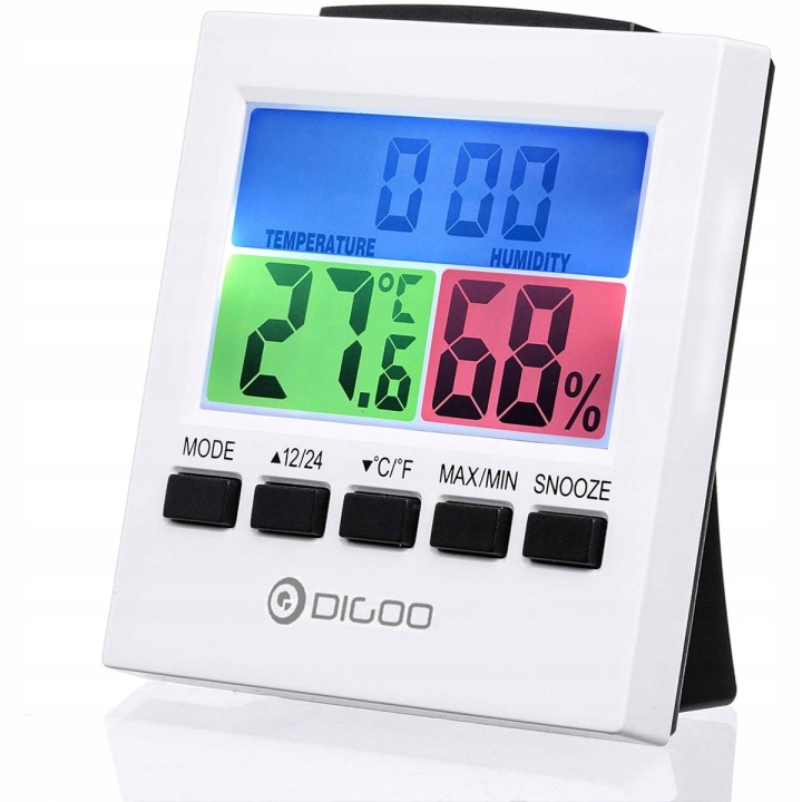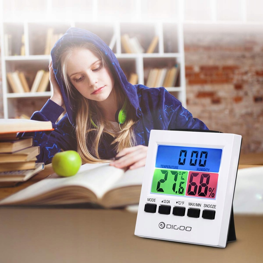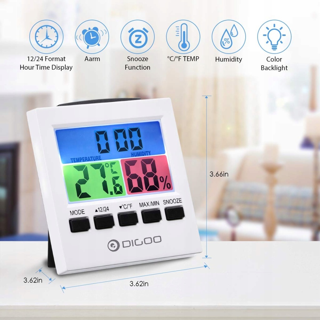 великий і красивий екран , з 3 кольоровими екранами для відображення часу і температури і вологості, зробити функцію більш чіткою і легко читати.