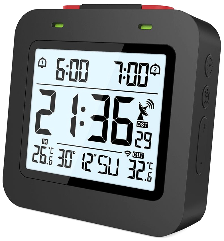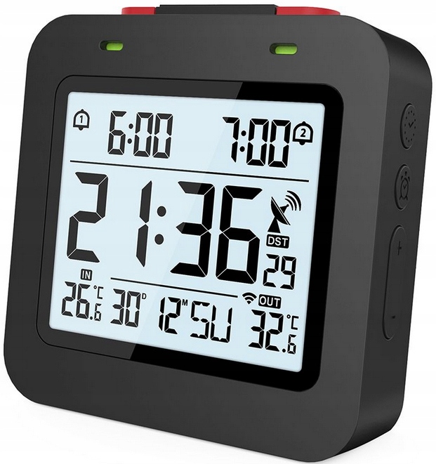 ГОДИННИК З ТЕРМОМЕТРОМ І ЗОВНІШНІМ ДАТЧИКОМ, БУДИЛЬНИК, МЕТЕОСТАНЦІЯ DCF