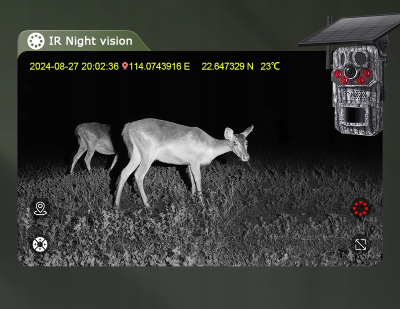 новітня фото-пастка 2024 року з функцією Live View і GPS. всі відео доступні в додатку на вашому телефоні, який надзвичайно простий у використанні. Дальність дії датчика руху PIR - до 25 метрів. Відправка повідомлень на телефон при виявленні руху . Камера має вбудований акумулятор, який заряджається безпосередньо від сонячної панелі камери, що дозволяє безперебійну роботу без необхідності підзарядки або заміни акумулятора . Сонячна панель без проблем заряджає акумулятор камери навіть в похмурі або осінні зимові дні