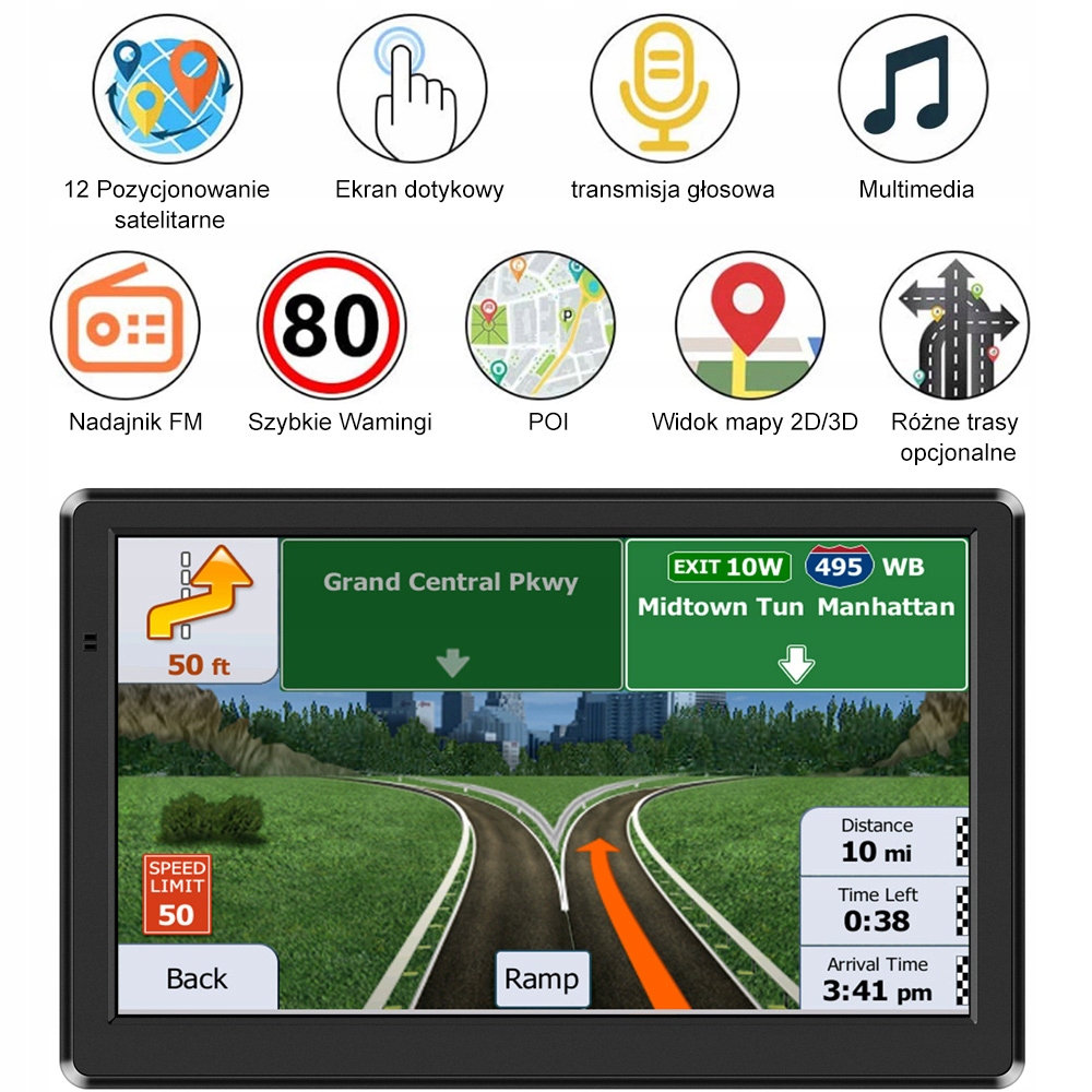 - автоматичні голосові і графічні оповіщення про швидкість, швидкісних камерах, небезпеки, низьких мостах, перехрестях з обмеженнями.