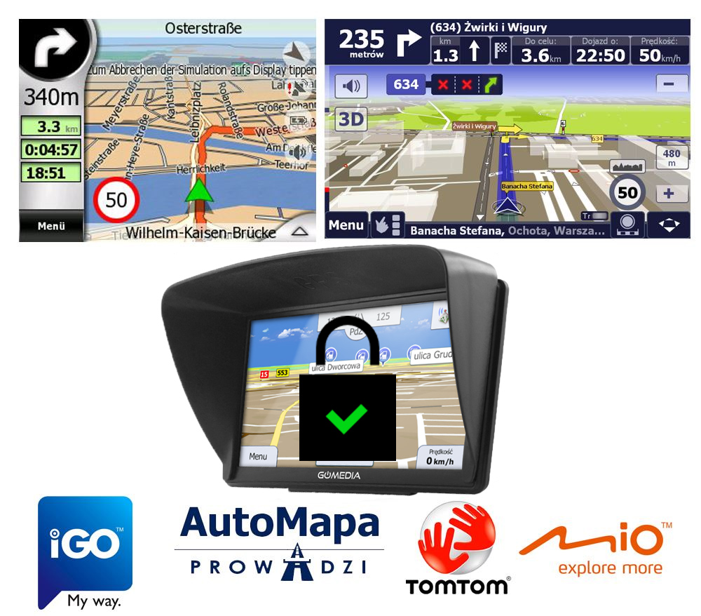 програмне забезпечення засноване на професійній, дуже обширній навігаційній системі iGO Primo польською мовою.