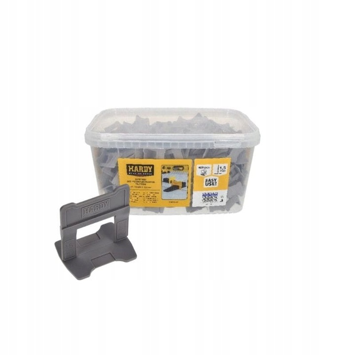 HARDY система вирівнювання плитки - це універсальне рішення для всіх, хто цінує точність і відмінну обробку при укладанні плитки. Набір з 400 затискачів зробить роботу простіше і ефективніше, а кінцевий результат буде ідеальним.