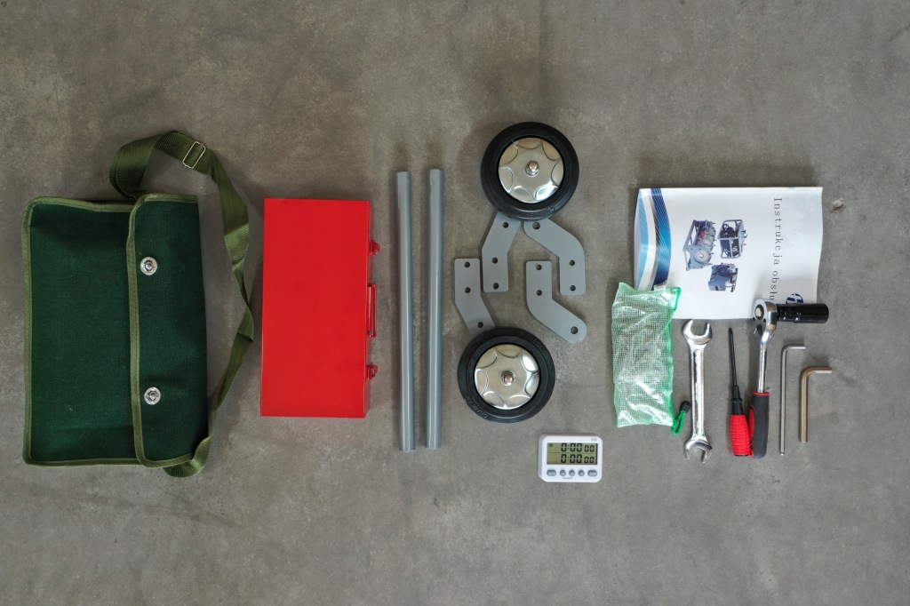 - сани з можливістю установки транспортних коліс, оснащені двома гідравлічними циліндрами, 2 фіксованими затискачами, 2 регульованими в залежності від уподобань установки щодо труби