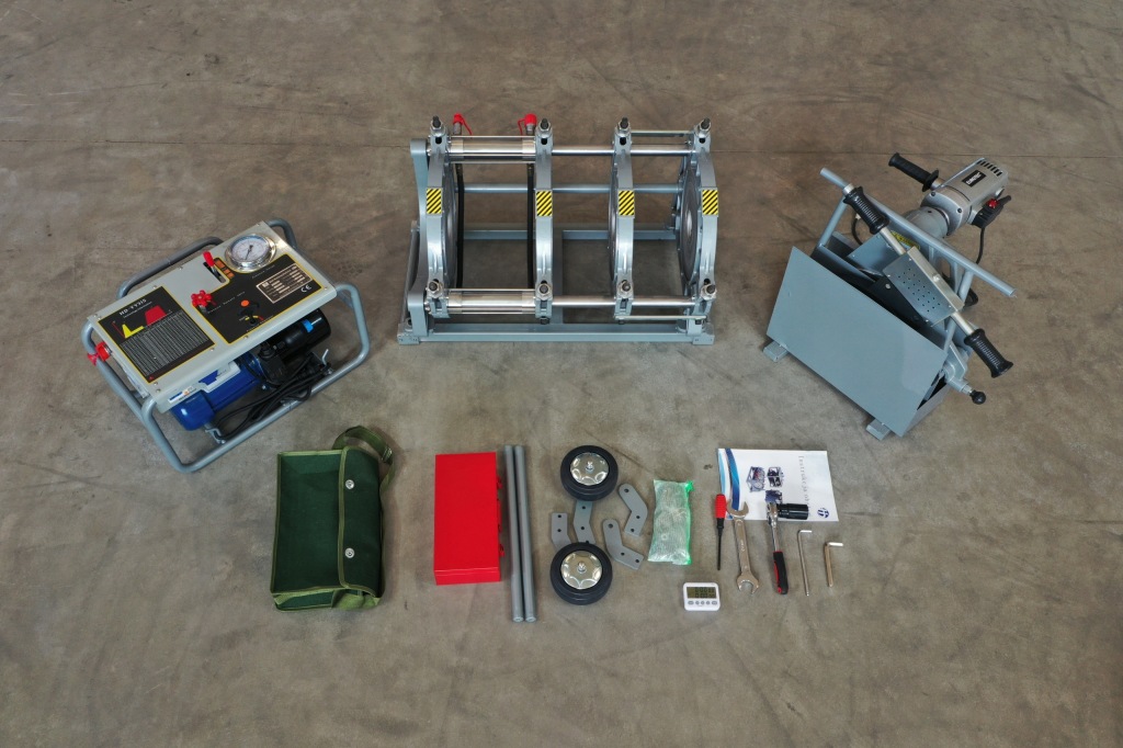 - зварювальний апарат оснащений комплектом редукційних кілець для зварювання труб діаметром: fi315 fi280 fi250 fi225 fi200 fi180 fi160 fi140 fi120 fi110 fi90