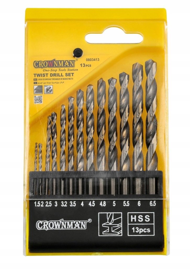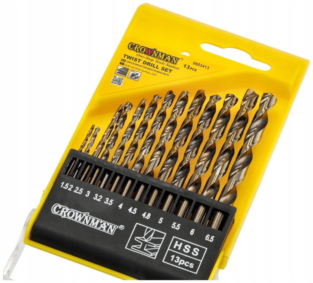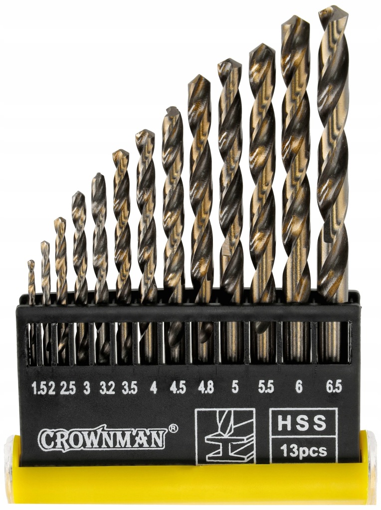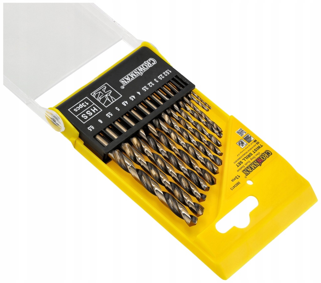 - вміст набору: 13 свердел розміром 1,5 - 6,5 мм.
