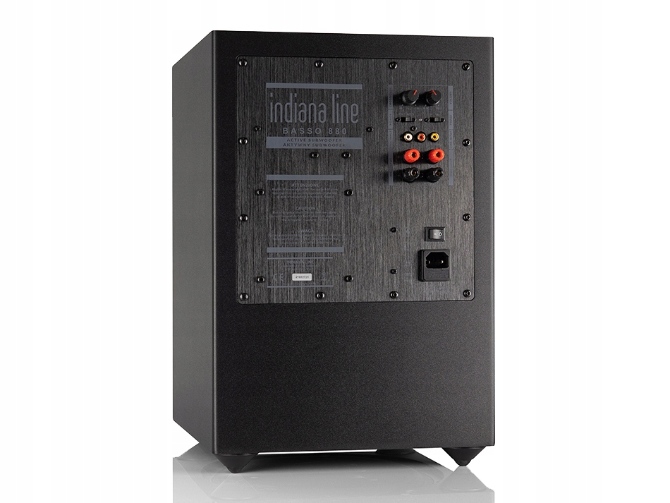 Basso 880-найбільший активний сабвуфер в лінійці Indiana Line. Він забезпечує потужність до 400 Вт. він відмінно підійде як для стереосистем, так і для домашнього кінотеатру. Він оснащений підсилювачем класу D, що, незважаючи на його високу потужність, має більш низьке енергоспоживання, ніж більш слабкі пристрої, що працюють в класі AB. Вищезгадана система посилення приводить в рух низькочастотний електроакустичний перетворювач діаметром 275 мм, розташований знизу.